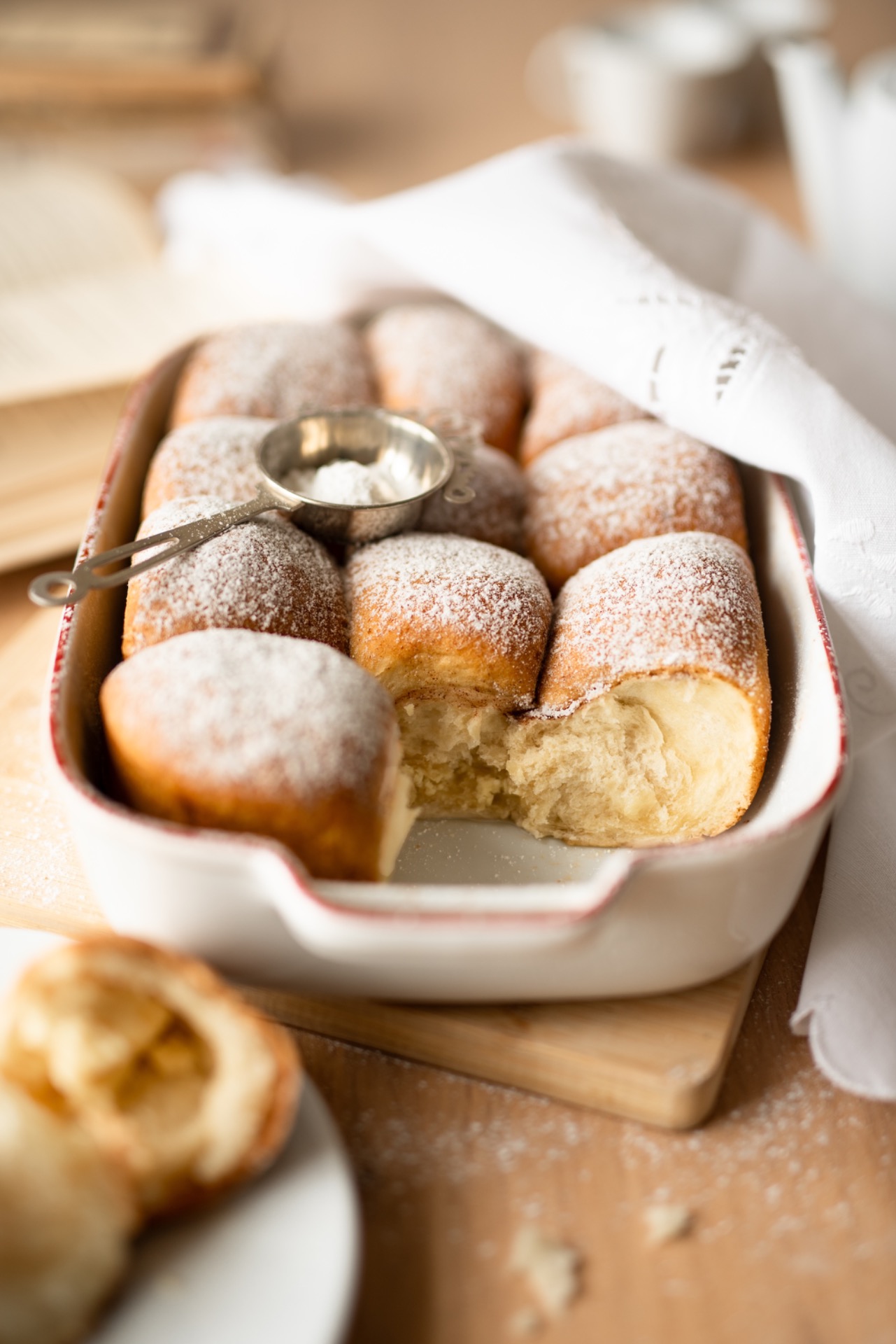 Nevím, jak to máte vy, ale já vždycky během podzimu zatoužím po něčem měkoučkém, sladkém a pěkně voňavém – zkrátka po něčem, co by mě v těch vyhasínajících dnech zahřálo hlavně na duši. Letos moje volba padla na nadýchané koblížky, které potěší kousky jablek a tou nejsladší polevou.