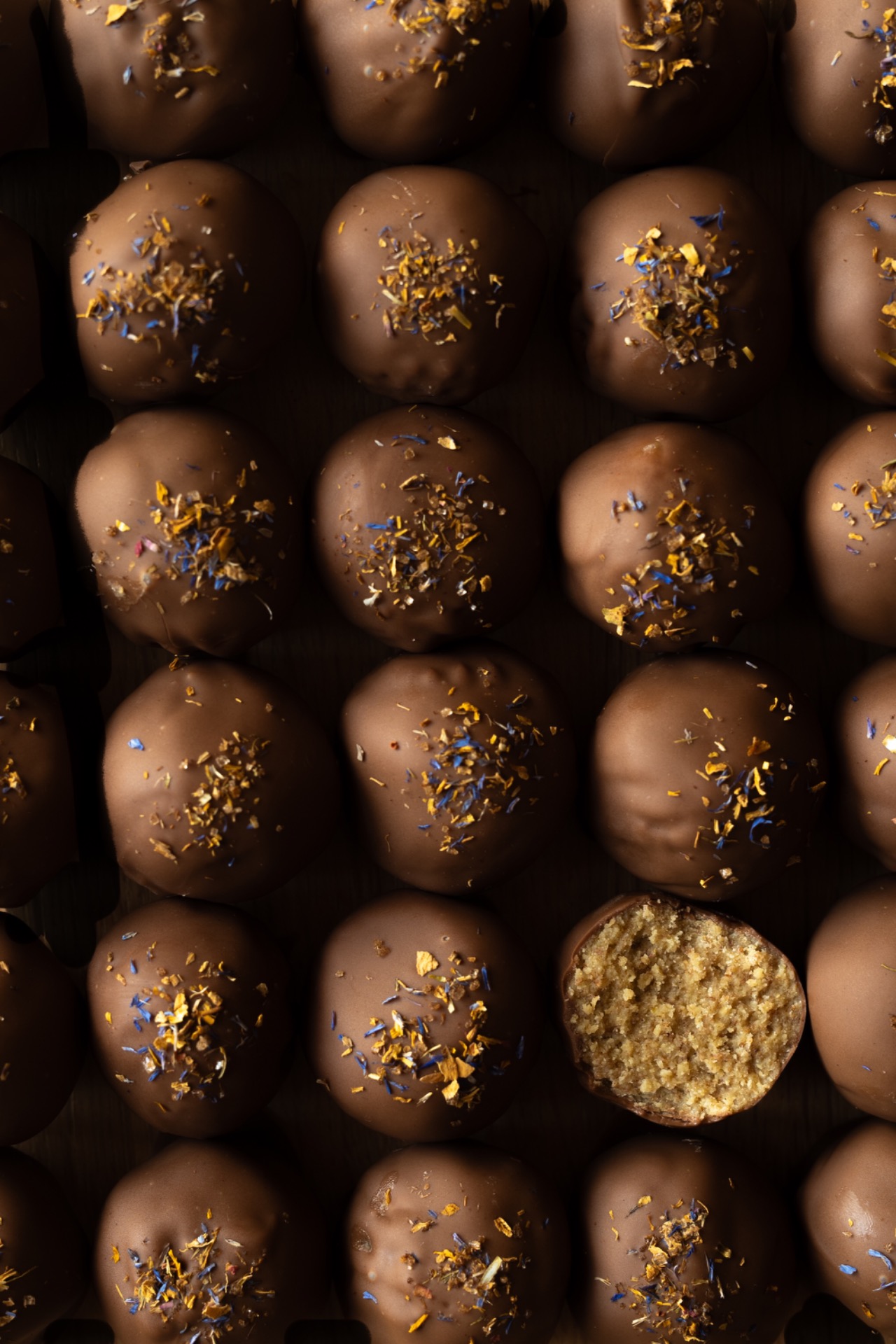 Povrch každé kuličky zlehka osolíme vločkovou solí nebo sušenými květy a poté celý plech uložíme do lednice, aby nám čokoláda pěkně ztvrdla. Perfektní svačinka!